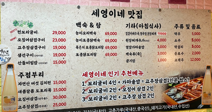- 능이버섯 오리·닭 백숙과 보리굴비 정식이 인기인 건강식당