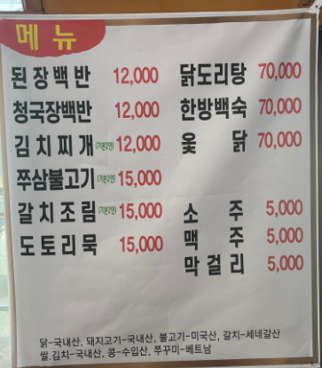 청국장백반 12,000원