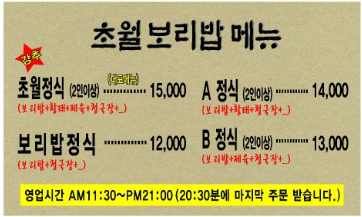 - 반찬 11가지 이상, 보리밥 무한리필