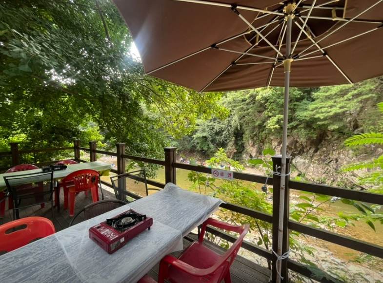 • 넓은 주차장과 야외 테라스, 물놀이 가능한 계곡 인접
