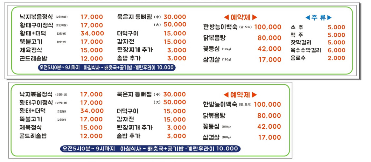 - 쭈꾸미볶음, 황태정식 등 푸짐한 구성의 정식 인기
