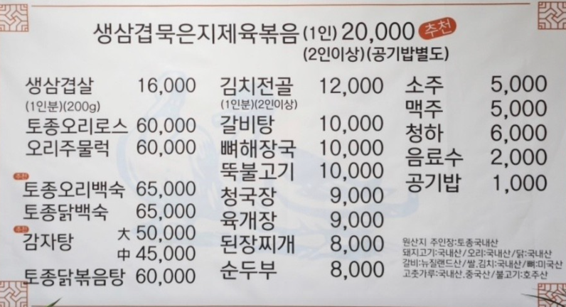 감자탕 대 50,000원