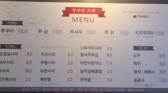 주소: 경기 광주시 새말길 164 1층 쭈꾸미가게
