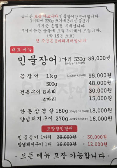 민물장어 1마리(330g) 39,000원