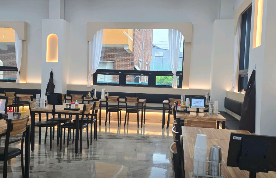 • 브레이크타임 있음, 깔끔한 실내와 회색 건물 외관