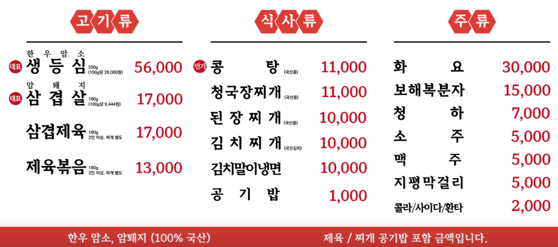 🥩 메뉴 안내