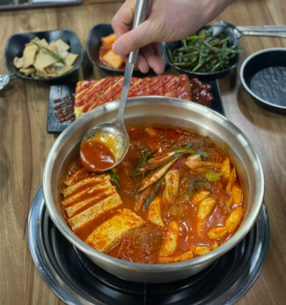 양념을 수제로 제조하여 안주하기 딱 좋은 맛, 테이블에서 끓이면서 먹는 김치찌개