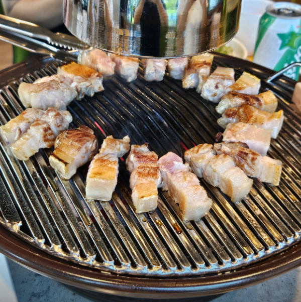 - 참숯 숯불로 구운 제주산 오겹살과 삼겹살이 일품