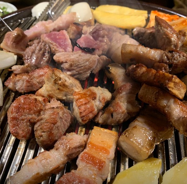 - 참숯 숯불로 구운 제주산 오겹살과 삼겹살이 일품