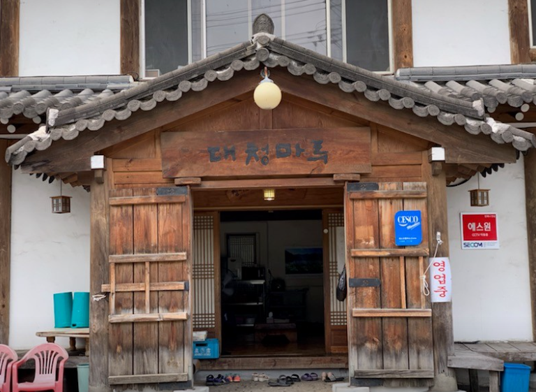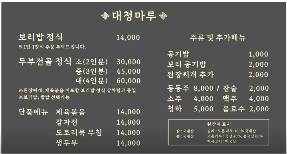 - 한옥 분위기의 실내와 넓은 주차 공간